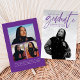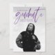 Moderne Abschluss-Ankündigungskarte mit dem beliebten Foto Ihres Absolventen auf der Vorderseite mit "Graduate" in einer lila handgeschriebenen Schrift. Personalisieren Sie die Vorderseite der Ankündigung, indem Sie den Namen des Absolventen, den Schulnamen und das Abschluss Jahr. Die trendige Ankündigung des Abschlusses kehrt zurück, um weitere 3 Fotos mit Platz für Text wie Zukunftspläne, Abschluss Details, Party Details, etc. anzuzeigen. Die 4 Foto Abschluss Ankündigung ist perfekt für Absolventen der Highschool und der Uni.