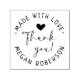 Geben Sie Ihrer Verpackung eine durchdachte, personalisierte Touch mit unserer schönen Dankeschön Briefmarke. Diese wunderschön gestaltete Briefmarke präsentiert elegante, runde handgeschriebene Typografie, in der Ihr individuelle Name elegant am Boden platziert wird, um eine einzigartige Markenbearbeitung zu gewährleisten. In der Mitte steht ein modernes Drehbuch wärmstens "Danke", betont von einem zarten, weißen Herz für eine zusätzliche Touch des Charmes. Diese hochwertige Briefmarke eignet sich ideal für handgemachte Produkte, kleine Geschäftsverpackungen oder besondere Geschenke. Sie überzeugt durch einen klaren und sauberen Eindruck.