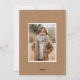Moderne Urlaubsfotokarten mit Ihrem vertikalen Foto mit "Frohe Weihnachten" in einem weißen handgeschriebenen Drehbuch. Personalisieren Sie die Weihnachtskarte des Fotos mit Ihrem Familiennamen und dem Jahr. Die Single Foto-Urlaubskarte kehrt zurück, um ein zusätzliches Foto und einen karamellbraunen Hintergrund mit subtilen weißen Punkten anzuzeigen.