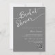 Mit dieser eleganten Brautdusche mit fließender handgeschriebener Schrift und einem eleganten, minimalistischen Layout würdigen Sie die zukünftige Braut. Der moderne graue Hintergrund und die weiße Typografie bieten eine raffinierte Touch, während ein eingebauter QR-Code den Gästen die Möglichkeit bietet, das Geschenkregister mit Leichtigkeit UAWG oder zu sehen. Vollständig anpassbar mit dem Namen der Braut, Duschdetails und personalisiertem Link - perfekt für eine stilvolle und mühelose Feier.
