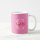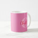Brighten Sie Ihren Morgen mit diesem handgeschriebenen Script Quirky Whimsy Mit Monogramm Coffee Tasse! Mit einer spielerischen roten Typografie auf einem rosa Hintergrund präsentiert dieses trendige Design Ihre Monogramm und Ihren Namen in einem lustigen, skurrilen Stil. Eine stilvolle und ästhetische Wahl für alle, die einen Pop Liebe!
