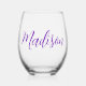 Ein hübsches, lila Weinglas mit personalisiertem Namen für eine Person, die einfache, handgeschriebene Geschenke Liebe. Schöne kursive Schrift, die Ihren Namen in der modernen Typografie ausdrückt. Ein trendiges Monogramm vorhanden.