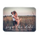 Individuell anpassbare Magnete mit Save the Date Foto mit Retro-Typografie.