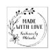 Aus Liebe selbst-färbende Briefmarke mit einem einfach gezeichnet Beerenblatt und Blume Kranz. Fügen Sie Ihren Namen in einem charmanten Skript hinzu.