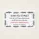 Charmante Gutscheinkarten mit handgezeichnet und handgeschriebener Suche nach einer persönlichen Touch, um in die Pakete, die Sie an Ihre Kunden schicken, zu schlüpfen, wo Sie Informationen über die Rabatte, die Sie ihnen auf ihrer nächsten Bestellung anbieten, hinzufügen können. Ein Rahmen aus Lorbeerzwickeln schmückt die Discount-Einsteckkarte, die mit charmanten handgeschriebenen Schriftart auf weißem Hintergrund besticht. Auf der anderen Seite der Verpackung Einsteckkarte für Ihr kleines Unternehmen, fügen Sie den Namen Ihres Unternehmens und Kontaktinformationen.