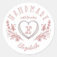 Klassischer Rundaufkleber, ideal für Hersteller, Unternehmen oder Einzelpersonen, die handgefertigte Waren und Produkte herstellen, um Ihre Marke verlassen. Das Design umfasst handgezeichnet Blumenmuster und grafisch skizzierte Herzkranzkunstwerke, benutzerdefinierte Monogramme und Namen, die in einem stilvollen, handgeschriebenen Textpaar dargestellt werden. Die Farben können auf den Anzug Ihrer Markenimage-Vorliebe geändert werden. Kunstwerk von Moodthologie.