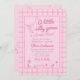 Wenn Sie eine elegante, einzigartige und leicht anpassbare Baby Girl Dusche Einladung suchen, ist dies perfekt für Sie. Wie Sie sehen, ist es mit einem Retro-handgeschriebenen Skript einer kleinen albernen Gans fast in vivid pink vorhanden. Und handgezogene Gans. Und rosa Rahmen und rosa karierte Quadrate. Al auf blassrosa Hintergrund. Sehr einfach zu anpassen und zu bedienen. So packen Sie es und männlich Ihre Einladungen sehr verlobt.