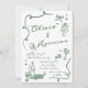 Handgezeichnete Elegant Retro Green Wedding Einlad Einladung