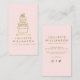 Eine gepflegte, berufliche und moderne Visitenkarte für Kuchenmacher und Dessert-Bar-Stylisten. Dieses Design zeigt ein skurriles, handgezeichnetes Bild eines drei gestuften Kuchens in Imitaten Gold und Geschäftsdetails in Imitat Gold, vor einem rot rosa Hintergrund. Die Rückseite der Karte hat einen rot rosa Hintergrund und Ihre Kontaktdetails und Social Media Icons (auch durch Klicken auf "Anpassen" entfernt) in Imitat gold.