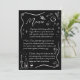 Diese einzigartige, unterhaltsame und informelle Hochzeitskollektion vereint Eleganz und verspielten Charme. Handgezeichnet Elemente schmücken die Einladung mit einem zarten Verlobung-Ring, der die ewige Liebe symbolisiert, einem dekadenten Hochzeitskuchen, der süße Anfänge verspricht, Champagner zum Feiern und fröhlichen Beifall. Blüten und Kerzen verleihen dieser Touch Romantik, während die Visionen eines romantischen Abendessens unter den Sternen über das Design tanzen. Bitte kontaktieren Sie uns in Touch für Design-Hilfe via Zazzle Chat. Wir werden sicher sein, innerhalb von 12 Stunden zu antworten.