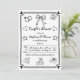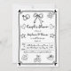 Handgezeichnete schwarz-weiße kritzeln kritzeln Retro Französisch Stil Hochzeitspaar Dusche Einladung. Dieses sonderbare Design wird mit liebevollen, in Drehschrift gezeichneten Illustrationen, wie Herz, Ehering und Bogen zum Leben erweckt. Die handgeschriebene Schrift und ein mit Herzen an jeder Ecke akzentuierter Rahmen tragen zur charmanten Ästhetik bei und erwecken die Spannung und Freude Ihres Polterabends.