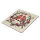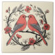 Handgezeichnete dekorative Keramik liebt Kacheln. Schönes, rotes, graues und cremefarbenes Kunstwerk, das aus zwei roten Vogelarten besteht und auf einem verstrickten Zweig mit hübschen Blume, Blätter und Knospen steht. Naturkunst von Aliss Anos in neutralen Cremes, gedämpften Rottönen und raffinierten Grautönen. Perfekt für moderne Vintage Wohngestaltung