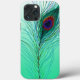 Elegante türkis, lila, blau und grün gezeichnete Pfauenfedern Telefongehäuse.