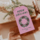 Wenn Sie ein einzigartiges und schön leicht bearbeitbares Weihnachtsgeschenk-Tag suchen. Dieses hier ist perfekt für dich. Wie Sie sehen, das Design verfügt über eine einzigartige grüne Hand gemacht und gezeichnet Weihnachtskranz. Mit creme und grüne handgeschriebene Typografie von fröhlichen Weihnachten und handgeschriebenen Namen in grün. Alles auf rosa Hintergrund.