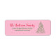 Wie Sie sehen, das Design verfügt über eine einzigartige grüne rosa Hand gemacht und gezeichnet Weihnachtsbaum aus Bändern. Mit roter Hand geschriebene Typografie Ihrer Familie . Und Ihre handgeschriebene grüne Rücksendeadresse. Das ist auf rosa Hintergrund anpassbar.
