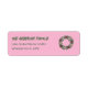 Wie Sie sehen, das Design verfügt über eine einzigartige grüne Hand gemacht und gezeichnet Weihnachtskranz und rosa Bögen. Mit grüner Hand geschriebene Typografie Ihrer Familie . Und Ihre handgeschriebene Rücksendeadresse. Das ist leicht anpassbar. Alles auf rosa, fett.