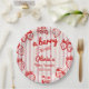 Wie Sie sehen, dieses einzigartige und elegante eine Beere süße Erdbeeren Baby Duschpapier Teller hat eine gut konzipierte Vorlage. Mit rot handgezeichneten Erdbeeren und kokigem handgeschriebenem Namen und Datum in magentafarbenem Rot. Alles auf cremefarbenem Hintergrund und Aquarellstreifen. Sie können sich einfach anpassen, indem Sie die Taste "Personalisieren" drücken.