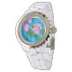 Handgezeichnete rosa Tulips auf Sky Blue Armbanduhr