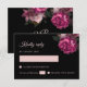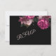 Diese elegante Hochzeitsantwortkarte zeigt handgezeichnete Rosen auf schwarzem Hintergrund. Passende Einladung erhältlich.