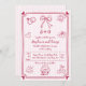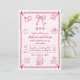 Handgezeichnete rosa und weiß kritzeln kritzeln Hochzeit Einladung. Laden Sie Ihre Gäste mit dieser sonderbaren und whimsikalen Einladung ein. Es zeigt handgezeichnet Illustrationen von verschiedenen whimiscal Doodles, einschließlich Herz, ein Ring und ein Bogen in magenta auf hellrosa und weiß gestreiften Hintergrund. Der handgeschriebene Schriftart und der Rahmen mit Herz an den Ecken sorgen für eine reizvolle Touch, die die Freude und Spannung Ihres besonderen Tages perfekt widerspiegelt und Ihre Gäste auf einzigartige und sonderbare Weise einlädt. Die Rückseite enthält einen QR-Code für Online-UAWG.
