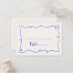 Feiern Sie stilvoll mit unserer lustigen und lustigen Hochzeitstisch-Platzkarte mit einem handgezeichneten Squiggle-Rahmen und lässigen handgeschriebenen Skripten in einem lustigen Farbschema von Kobaltblau auf ecru.