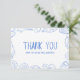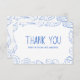 Whimsical "Seashells and Wedding Bells" Thema doppelseitig bedankte Dankeschön-Karte mit einem charmanten handgezeichnet Muschelrahmen, der die Schönheit des Ozeans einfängt und einen belebten Rahmen schafft, der das Meeresthema ergänzt. Der lässige und skurrile handgeschriebene Schriftart fügt eine persönliche Touch hinzu, die das lustige, entspannte Ambiente steigert. Mit einer lebendigen mediterranen, blau leuchtenden Farbpalette erinnert die Karte an die ruhige Schönheit eines Küstenstreifens und sorgt für eine erfrischende und beruhigende Wirkung. Diese Palette ergänzt wunderbar den Muschelrahmen und verleiht dem Design ein Gefühl der Ruhe am Meer.