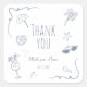 Diese handgezeichneten Strand-Doodle-„Thank You“-Sticker für die Bridal Shower zeigen einen knackig weißen Hintergrund mit skurrilen, staubblauen Küstenzeichnungen wie Muscheln, Wellen, Seesternen, Sonnenbrillen und Glitzer. In der Mitte befindet sich ein editierbarer Text mit der Aufschrift „Danke“, mit anpassbaren Stellen für den Namen der Braut und das Datum der Veranstaltung darunter. Perfekt zum Dekorieren von Geschenken, Umschlägen, Leckereien, Willkommensgeschenken und vielem mehr – jedes Detail ist vollständig anpassbar, um Ihrem strandigen Hochzeitsthema zu entsprechen.