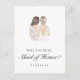 Pop die Frage "Werden Sie meine Trauzeugin sein?" mit dieser Überbrückungskarte, die eine schöne handgezeichnete Aquarellgrafik einer Brautjungfrau und Braut enthält. Eine klassische Mischung aus Vintagen und modernen Elementen schafft ein schlichtes, elegantes Aussehen.