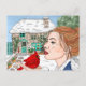 Handgezeichneter Wintertag, englische Hütte Postkarte