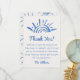 Wie Sie sehen, dieses Baby-Dusche danke Karten Features, die hier kommt der Sohn blauen Thema. Mit handgezeichneter Sonne und ihre Strahlen mit handgeschriebenen Skript von Dankeschön und danke Absatz Vorlage in blau. Mit Familienname unten. Alle diese Designvorlagen können durch Klicken auf die Schaltfläche Personalisierung einfach angepasst werden.