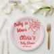 Wie Sie sehen, dieses einzigartige und elegante Baby in blühenden Blumenstrauß Baby Dusche Papier Teller hat eine gut konzipierte Vorlage. Mit rot handgezeichneten Blume und skurrilen handgeschriebenen Namen und Datum in magentroter Schrift. Alle auf rosa Hintergrund. Sie können sich einfach anpassen, indem Sie die Taste "Personalisieren" drücken.