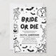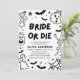 Braut oder Die 💋 💀 bereit zum Töten, Schluchten? Diese handgezeichnet Halloween Braut-Einladung ist perfekt für die spukhafte Braut, die alles andere als einfach ist. Mit tanzenden Skeletten, Gespenstern mit Cocktails, Fledermäusen, Jack-o'-Laternen und Spinnennetzen - es ist gruselig, niedlich und total tödlich. 🦇 🎃 Perfekt für ein gotisches Bachelorette, ein witziges Brautparty oder ein Till Death Do Uns Party. Editierbar, stilvoll und garantiert, Kopf drehen (und vielleicht ein paar rollen). ✨ Ein Muss für die Braut, die zu Party stirbt! ✨