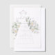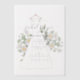 Ein einzigartiges, handgezeichnetes Hochzeitskleid mit weißem Aquarell im Hintergrund Brautduscheinladung. Ein Vintages, handgezeichnetes Design mit einzigartigen Illustrationen mit schönen weißen Blume. Einfach die Bridal Dusche Einladung anpassen und ganz nach Ihren Wünschen gestalten.