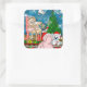 Handgezeichnetes Nostalgisches Weihnachtsfenster Quadratischer Aufkleber