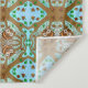 Handgezeichnete Schale Mandala Kunstwerk in orangefarbenen, braunen, blauen und grünen Tapisserien.