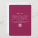 Vereinfachen Sie Ihre Hochzeitsarbeit mit dieser handgezeichneten Lila Magenta Wappen Monogram All-in-One Hochzeitsvorlage. Diese Einladung, die mit einem skurrilen blumigen Wappen gestaltet wurde, enthält Platz für alle Ihre notwendigen Hochzeitsdetails - sowie UAWG info und einen individuellen QR-Code auf der Rückseite, um die Gäste auf Ihre Hochzeitswebsite zu leiten. Eine stilvolle, preisgünstige Lösung, die die Notwendigkeit separater RSVP-Karten eliminiert und die Planung erleichtert, ohne dabei den Charme zu verlieren.