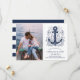 Verkünden Sie Ihre Hochzeit mit Familie und Freunden mit diesen Küsten-Chic speichern Sie die Dattelkarten in klassisch marineblau und knusprig weiß. Das Design bietet neben einem handgezeichnet Schiffsankerbild Ihr Lieblingsstift mit "freundlich Save the Date", das im Inneren eingeschrieben ist. Personalisieren Sie diese nautischen speichern Sie die Datumskarten mit Ihren Namen, Hochzeitstag, Ort und Hochzeit Website, oder ein Hinweis darauf, dass eine offizielle Einladung folgen wird. Die Karten werden zu breiten, waagerechten Marinebändern und weißen Streifen umgeschaltet.