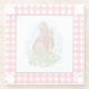 Ein Huhn sitzend in Klee und Blume handgezeichnet Skizze. Niedliches Geschenk für deine Lieblings-Hühnermutter. Gelb und rot karierter Gingham zurück.