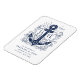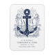 Mit diesen schicken Küsten-Magneten können Sie Ihre Hochzeit bei Familie und Freunden ankündigen und die Dattelmagnete in klassisch marineblau und knusprig weiß speichern. Design zeigt eine handgezeichnet Ankerillustrierung des Schiffes mit "freundlich Save the Date", die innen eingeschrieben ist. Personalisieren Sie diese nautischen speichern Sie die Datums-Magnete mit Ihren Namen, Hochzeitdatum und Position unter der Haupt-Abbildung.