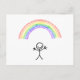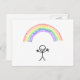 Handgezogener Stabmann unter einer Regenbogenpostk Postkarte