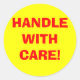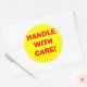 Diese großen, gelben, runden Versandwarnungen haben "HANDLE WITH CARE!" im großen roten Schriftart. Dieses Design kann wie-is gekauft werden oder Sie können es als Vorlage verwenden, um Ihre eigene Versandaufkleber-Design.