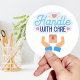 Handhabung mit vorsichtigen klassischen Round-Stic Runder Aufkleber