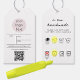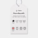 Ein berufliches Firmenlogo hängt/schwingt mit Ihren Geschäftsdetails, dem Preis, dem QR-Code und den Pflegeanweisungen auf der Rückseite. Einfach anpassen und zu Ihrem eigenen machen! Markieren Sie die Pflegeanweisungen, um Ihre Kunden darüber zu informieren, wie sie sich um ihr Produkt kümmern.