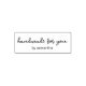 Diese selbstklingende Briefmarke sagt handgefertigt für Sie in einem Skript. Das ist die oberste Zeile. Die zweite Zeile ist für Ihren Namen und ist kein Skript. Als kleiner Geschäftsinhaber ist es wichtig, Ihre einzigartigen, handgefertigten Produkte zu markieren. Eine selbstfarbige Briefmarke ist eine kostengünstige Möglichkeit, Ihre Kunden daran zu erinnern, dass sie ihr Produkt handgefertigt haben.