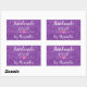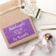 Moderner rechteckiger Aufkleber "handgefertigt mit Liebe" mit einem weißen Schriftart auf einem lila Glitzer, der durch ein niedliches Herz verziert ist. Text anpassen.