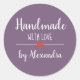 Handmade mit lila Liebe-Skript Runder Aufkleber