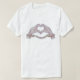 Eine Darstellung der Hände eines Menschen, die mit den Fingern die Herzgeste machen. Die Person ist in Handschellen. Ein Design zur Förderung von Freiheit, Protest und passivem Widerstand.