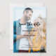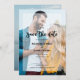 Doppelseitig Save the Date mit zwei vollblutenden Portrait-Fotos des glücklichen Paares. Das Foto auf der Vorderseite ist teilweise mit einem Imitat Vellum-Stil, durchsichtigem Overlay und Hand mit "Save the Date" in einem Buschskript versehen. Die Vorlage ist für Sie Set, um mit Ihren Namen, Hochzeitsdatum und alle weiteren Informationen, die Sie auf dieser Bühne geben möchten, anpassen. Das Foto auf der Kartenrückseite ist farbig und ohne Overlay.