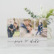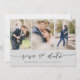 Wählen Sie die besten Bilder aus Ihrem Verlobung-Shooting oder Ihre Lieblingsfotos von Ihnen beiden für dieses perfekte Save the Date. Save the Date sind die Wörter handgeschrieben, um der Karte ein persönliches Gefühl zu geben. Die Vorderseite hat 3 Bilder und die Rückseite hat ein großes Bild mit einem weißen Filter oben. Bearbeiten Sie diese Save the Date Hochzeitskarte mit Ihren Informationen und passen Sie sie für weitere Farboptionen für Schriftart und Schriftart an.