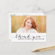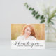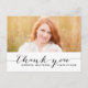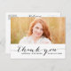 Trendy Handgeschriebene Black Script Foto Abschluss Vielen Dank Postcard. Design von Elke Clarke © Besuchen Sie unseren Shop www.zazzle.com/monogramgallery* für weitere Farben und Stile. Fügen Sie Ihr eigenes Foto und Text hinzu. Ein schlichtes schwarzes Typografie-Overlay auf weißem Hintergrund mit den Worten "Danke". Ersetzen Sie das Beispiel-Foto durch das eigene.